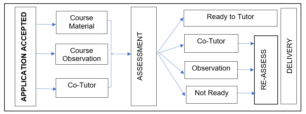 A tutor will be expected to undertake the following process before being signed off as a licensed tutor to deliver: